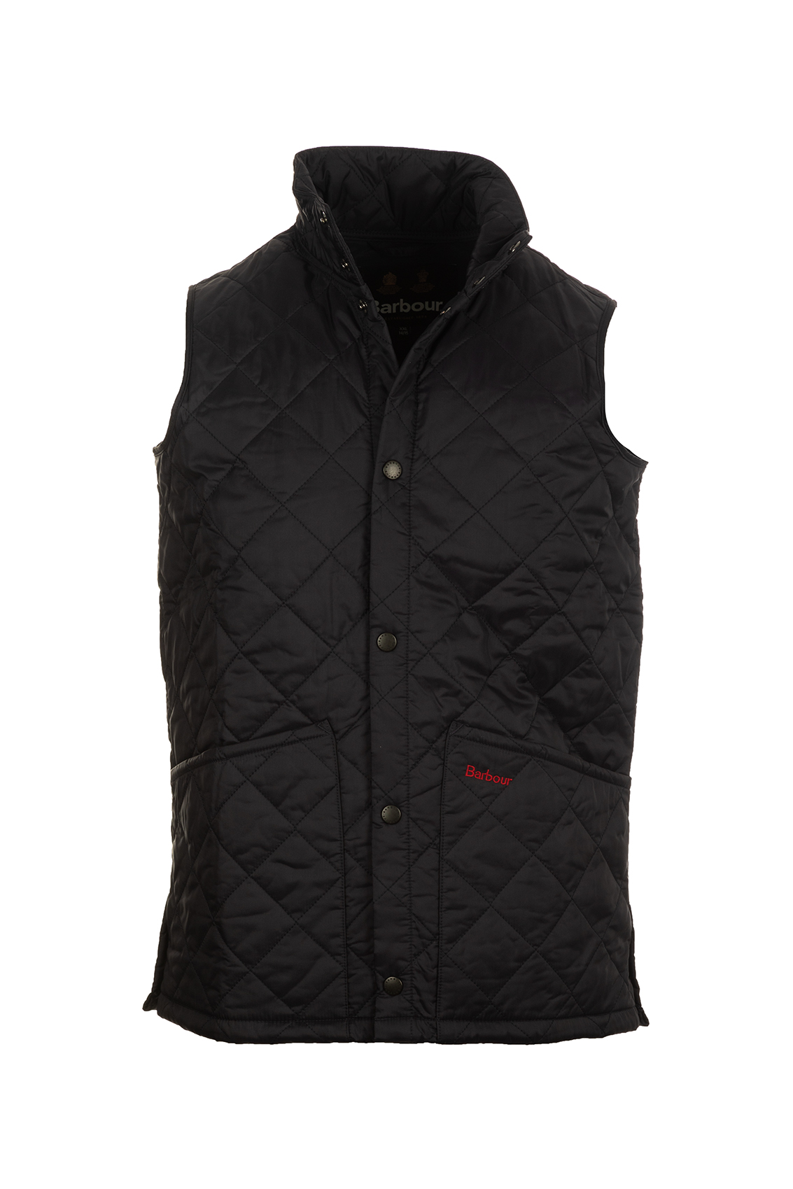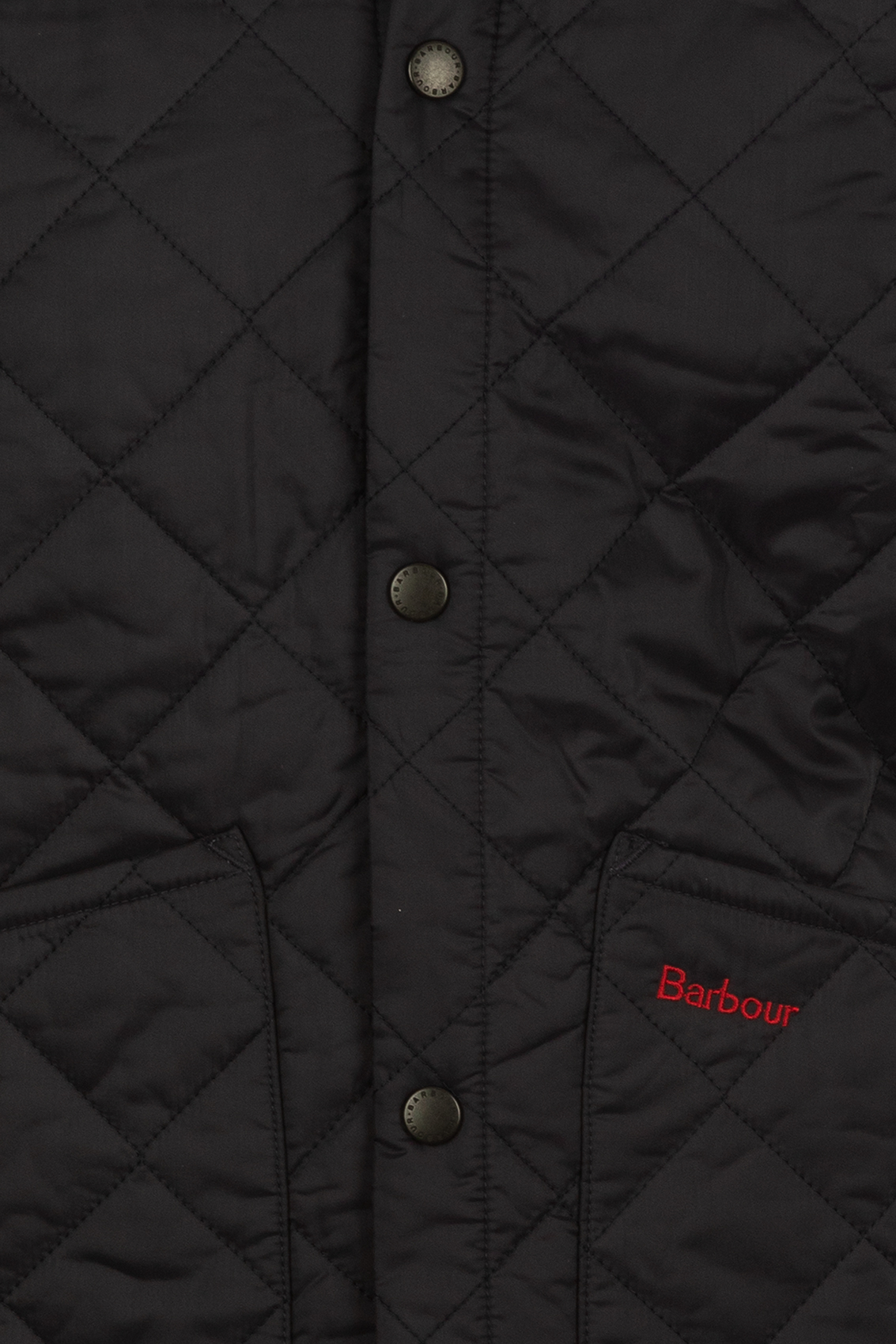 Il gilet per bambini Barbour Liddesdale è caratterizzato da un design trapuntato a rombi con bottoni metallici sul davanti, un colletto in piedi e tasche inferiori applicate.