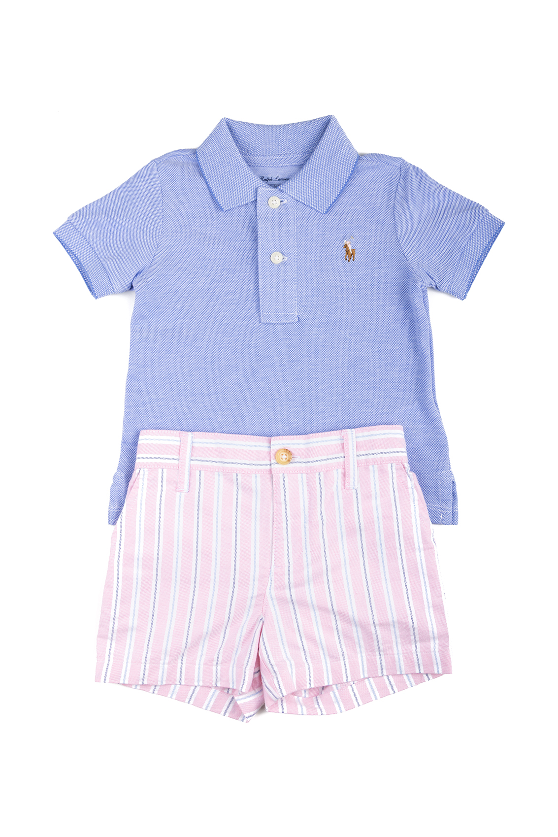Bambini>Neonato>Abbigliamento>Completi>RALPH LAUREN POLO IN PIQUÉ OXFORD E SHORT A RIGHE