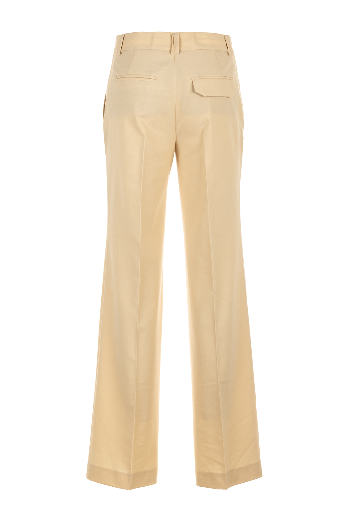 Pantaloni sartoriali Made in Italy, patta nascosta e chiusura con bottoni passanti per cintura due tasche laterali a fessura due tasche posteriori a filetto.