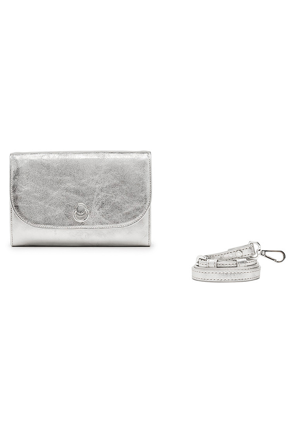Borsa dal design lineare, ideale per donare un touch di eleganza ai look. Realizzata in pelle laminata, dall’effetto luminoso e dal look vintage presenta una chiusura superiore con patta arricchita dall'iconico anello con nodo.