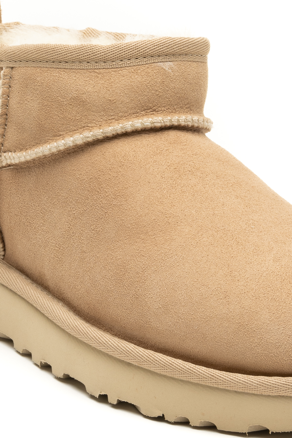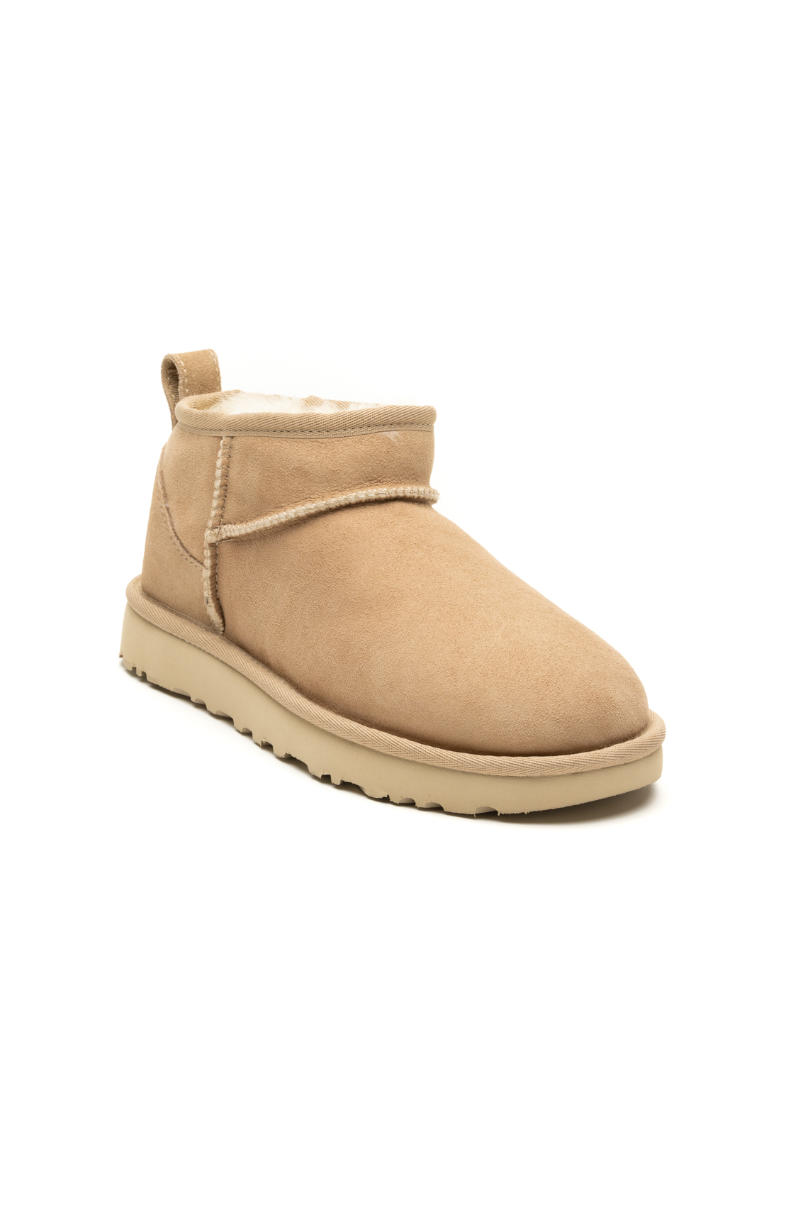 Il modello Classic Ultra Mini è caratterizzato da una silhouette a basso profilo che lo rende facile da indossare e da abbinare a vari outfit. Sono dotati di una comoda linguetta posteriore per indossarli e toglierli facilmente. Sono realizzati in pelle scamosciata di alta qualità, dotati di una morbida fodera in peluche che ne aumenta il comfort generale.