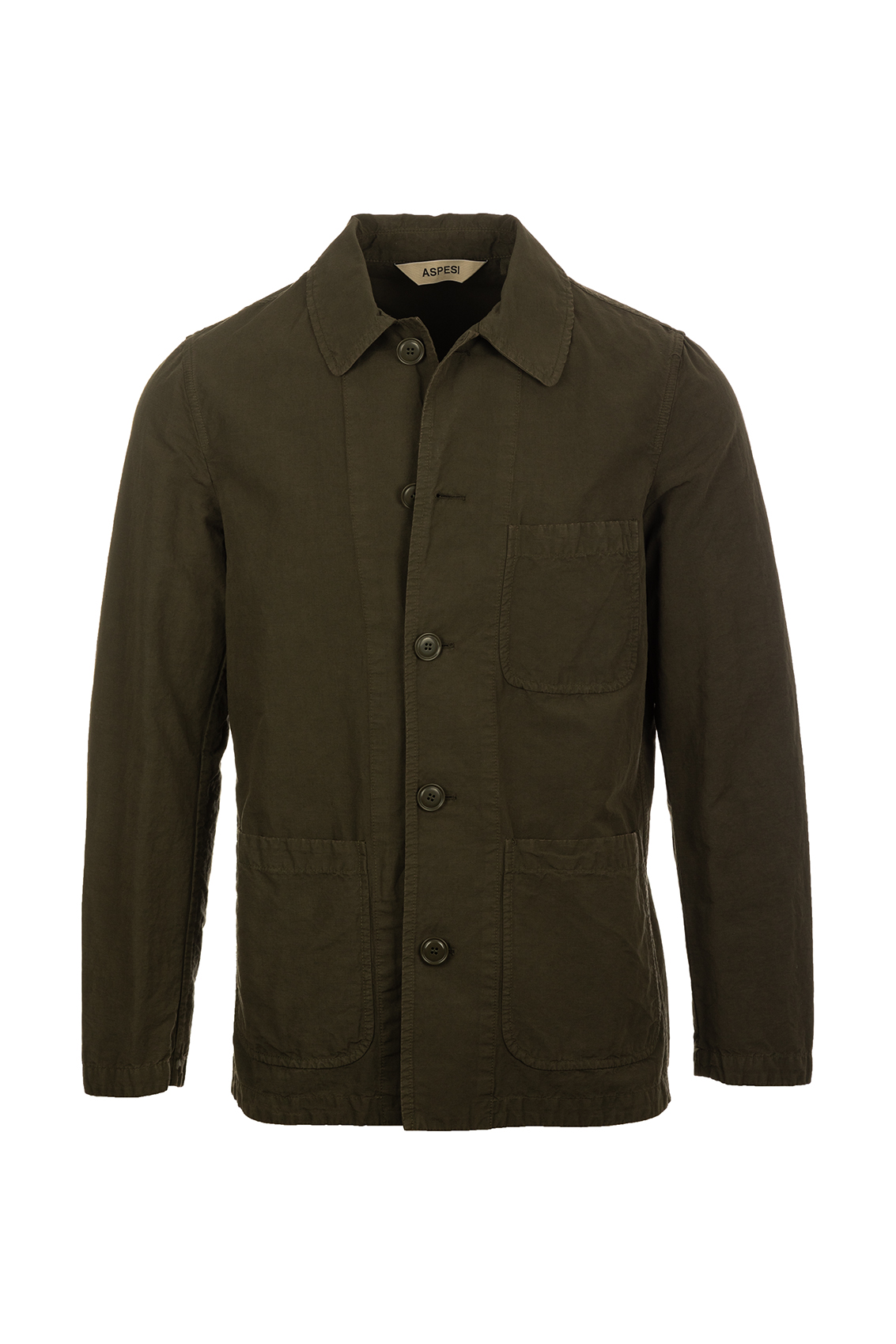 - Chiusura con bottoni a vista, collo a camicia, tre tasche applicate