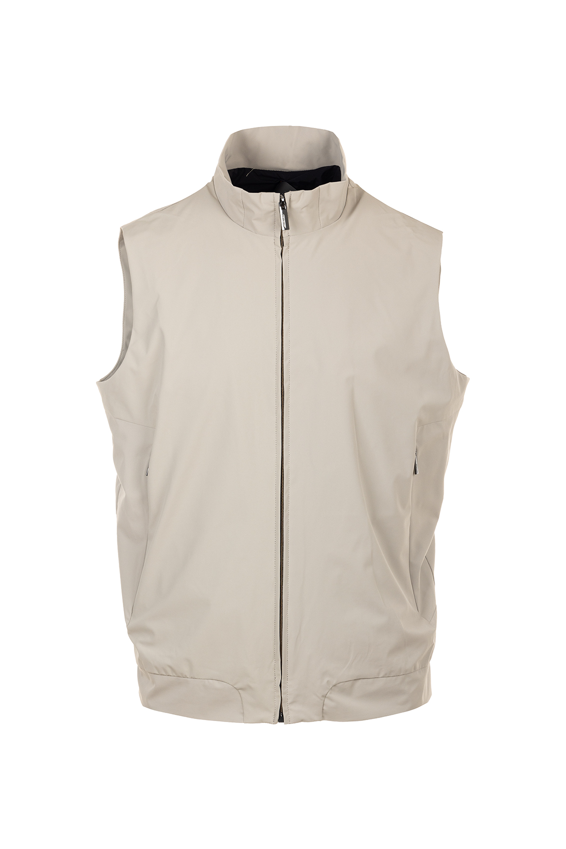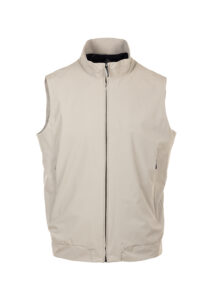 Giacca senza maniche da uomo (gilet) di Roberto Ricci Designs (RRD), pensata per la stagione primavera/estate. Si distingue per il suo stile moderno e minimalista e per le sue caratteristiche tecniche adatte al clima di transizione. Realizzato in un morbido tessuto membranato opaco ed elasticizzato, impermeabile e traspirante, garantisce comfort e protezione in condizioni climatiche variabili. Colletto verticale con chiusura frontale a zip. Tasche a filetto per praticità e linee pulite.